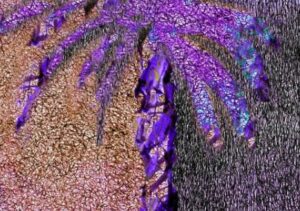 Artist Kaethe Kauffman’s ink drawings use layers of organic lines to build up energetic darks and lights, denoting texture and density. Her subject is nature, in both the outside world – water, landscapes, animals, and trees – and within an individual’s interior, as seen in meditation.